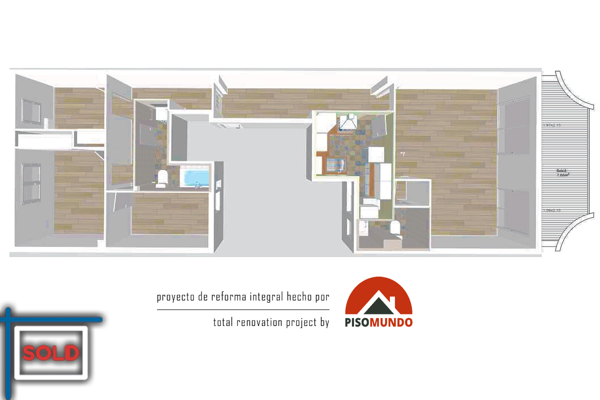 This completely with taste renovated apartment is in a 7-floors building plus a mezzanine with a single apartment per floor. The floor is completely exterior and all rooms have natural light including the two bathrooms and the kitchen.
