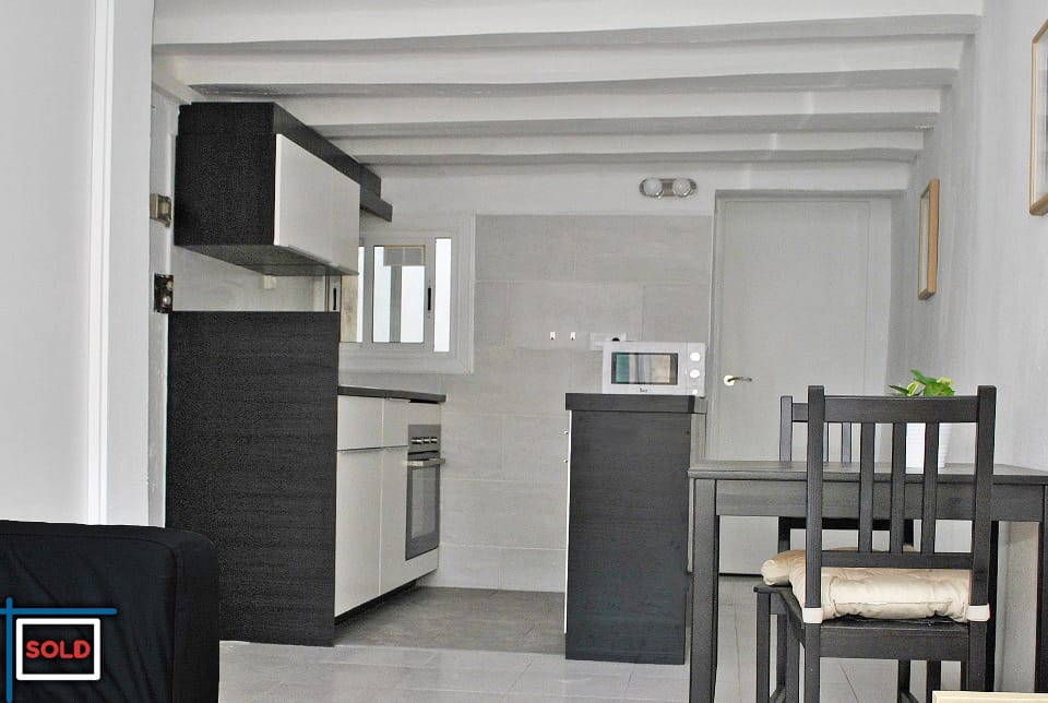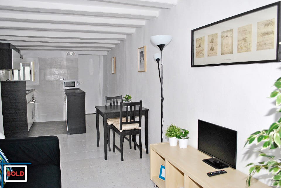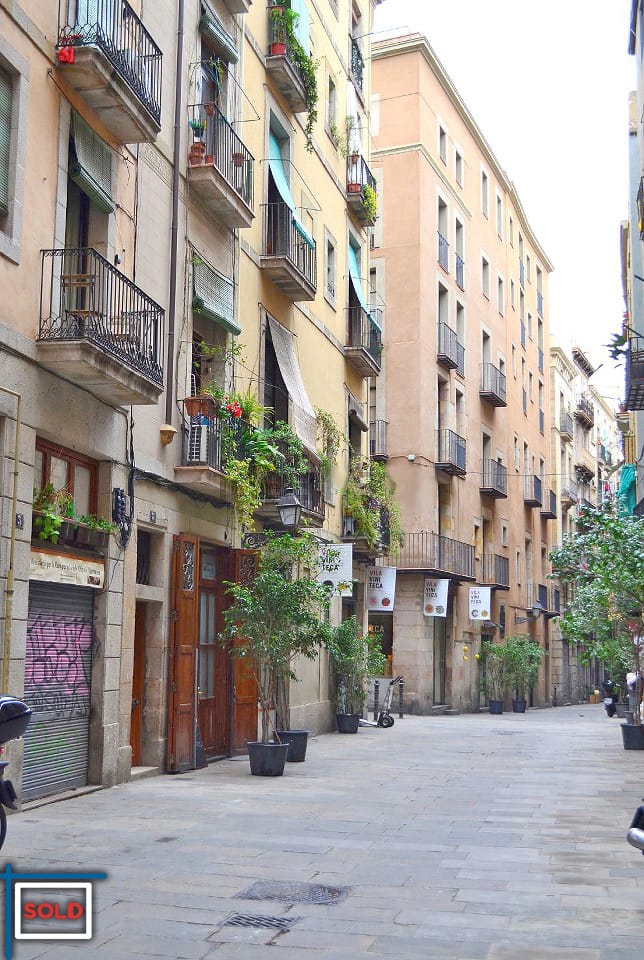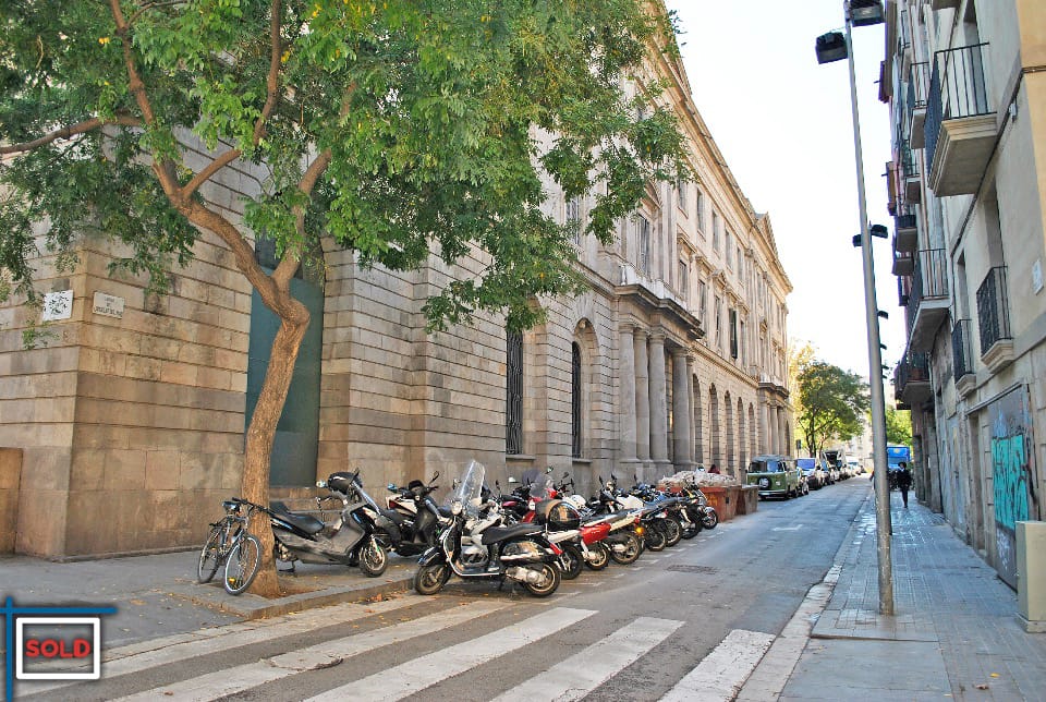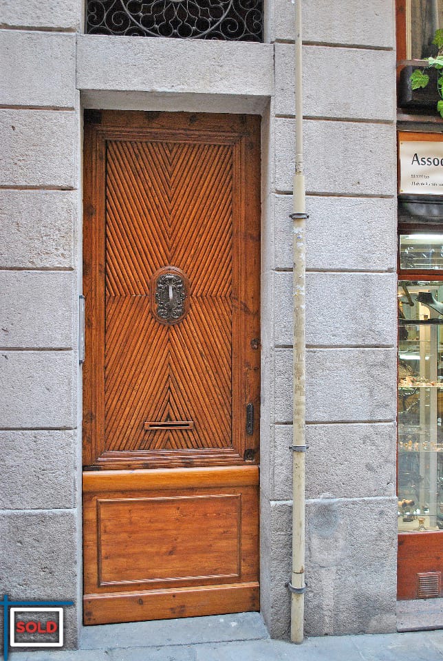 This building from 1862 is cataloged with a beautiful solid hand crafted wood door. The apartment itself has wooden beams on the ceiling which is very typical for the classical buildings in Barcelona.