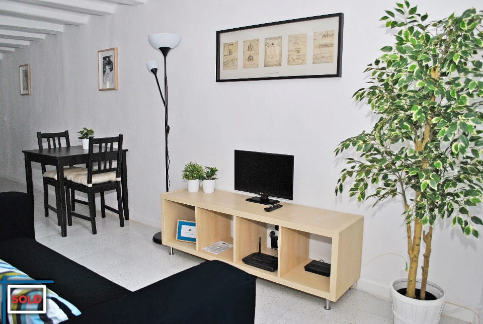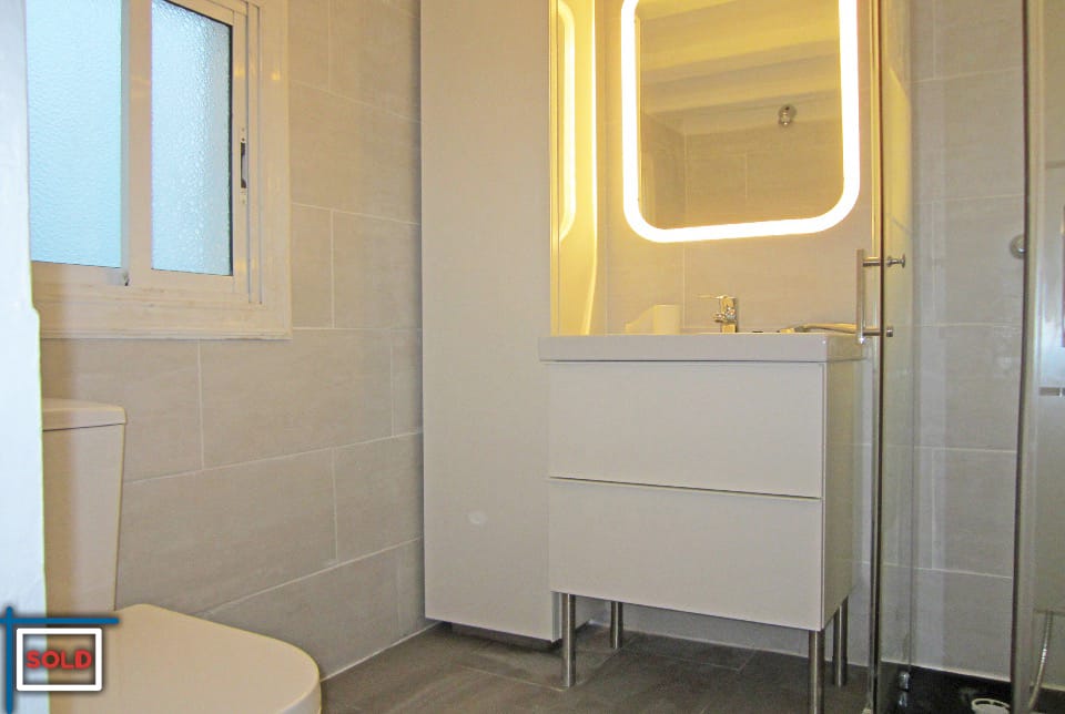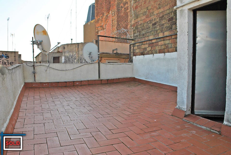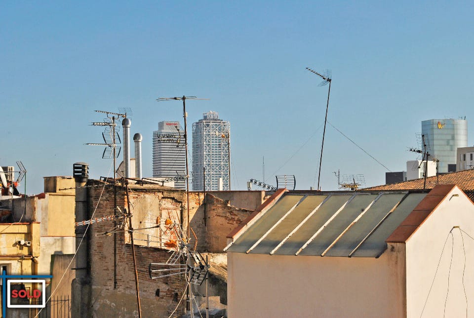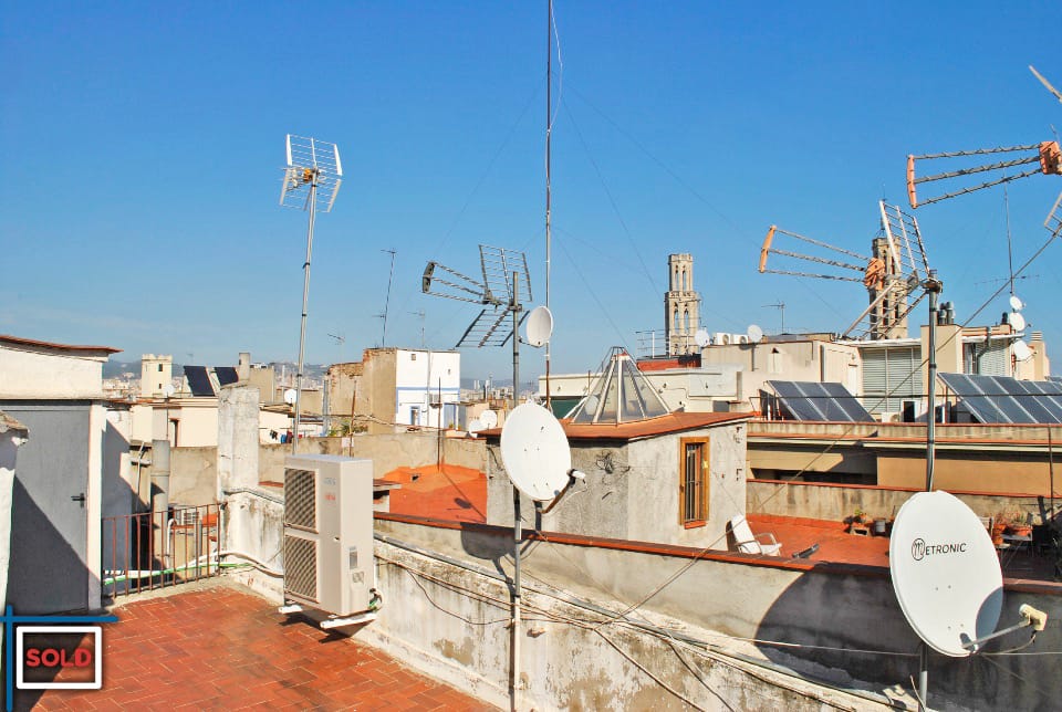 This apartment has natural light and is sunny in the morning. The community terrace, directly on top of this apartment, is in general never used by the (only) 4 neighbors on the lower floors in the building. The community terrace is very sunny and offers views to the mountains, the Santa Maria del Mar church, Villa Olimpica, and all the city.