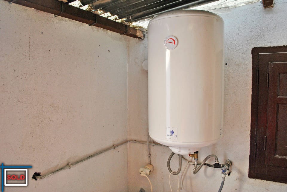 A private storage on the community terrace with the washer and the big hot water boiler.
